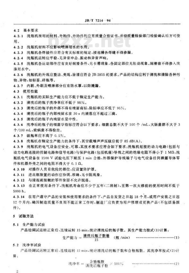 产品经调试运转正常后.连续运转15min.统计清洗后的瓶子数和合格瓶数。其洗净率按式(2)计算: