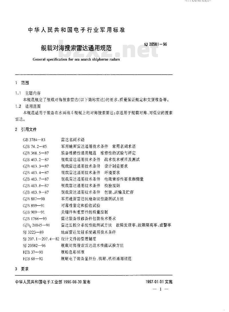 - SJ 20581-1996 舰载对海搜索雷达通用规范