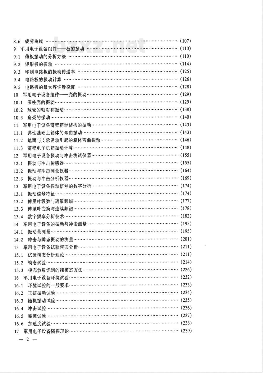 11军用电子设备薄壁箱形结构的振动…11.1弹性基础上箱体的弯曲振动.11.2地面与支承运动引起的箱体弯曲振动·11.3薄壁电子机箱振动计算…·12军用电子设备振动与冲击测试仪器….·12.1振动与冲击传感器…