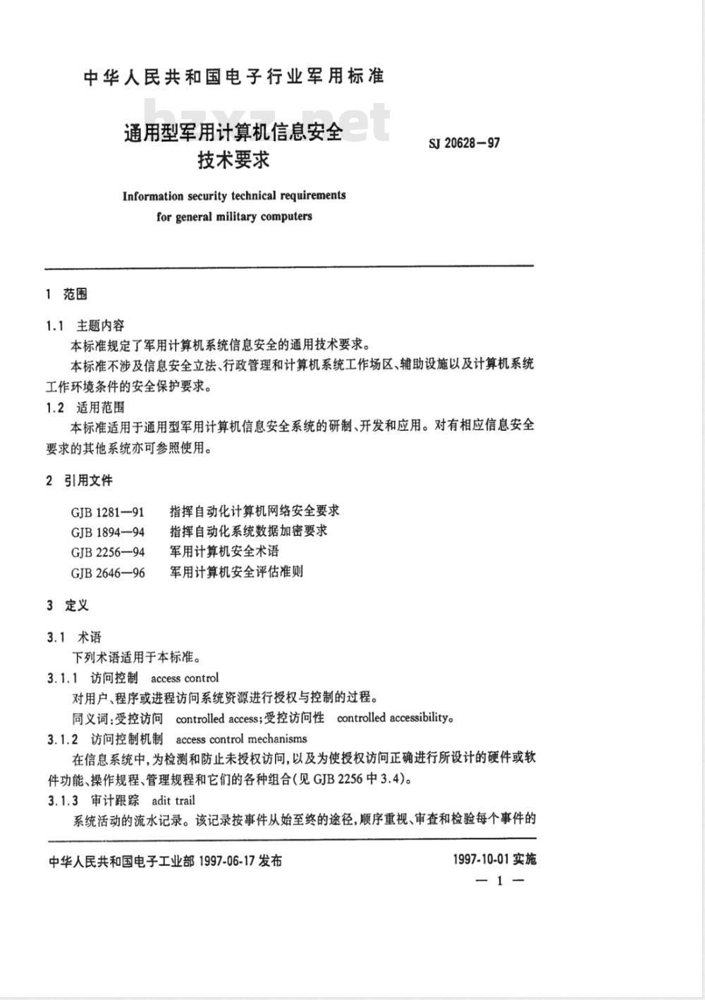 - SJ 20628-1997 通用型军用计算机信息安全技术要求