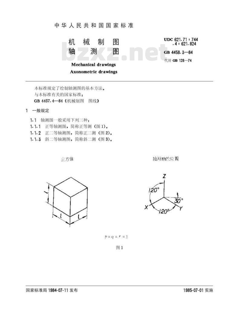 1.2轴测轴的位置和轴向变形系数GB4458.3—84