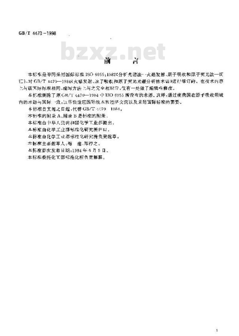 本标准的附求A,阳录B展标准药附录本标准由中华人民共和国化学工业部提出:牛标证由化学工业市标注化研究所片山标准由化学工止部际注化研究所负声起草。太标准主要起草人,每残、部疗之。标准首次发布日期:1984年6月5口。本标科委托化工部求准化所负克释:GB/144701998