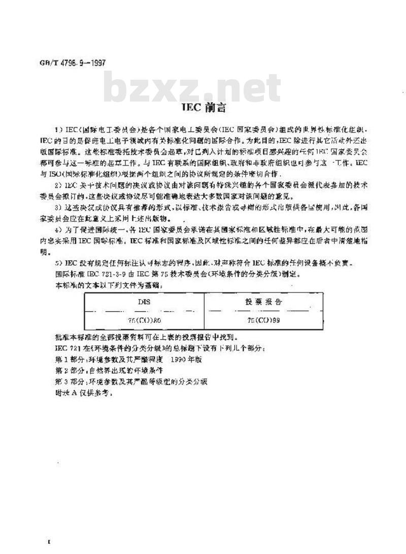 5)IEC段有规定征何标注认可标克的我序,固此对声称符合IEC标准的于伺设备概不负责,国际标准[EC.721-3-9由IEC第75技术委量会(环境条件的分类分级)制定。本标准的文本以下列文件为基础:DIS