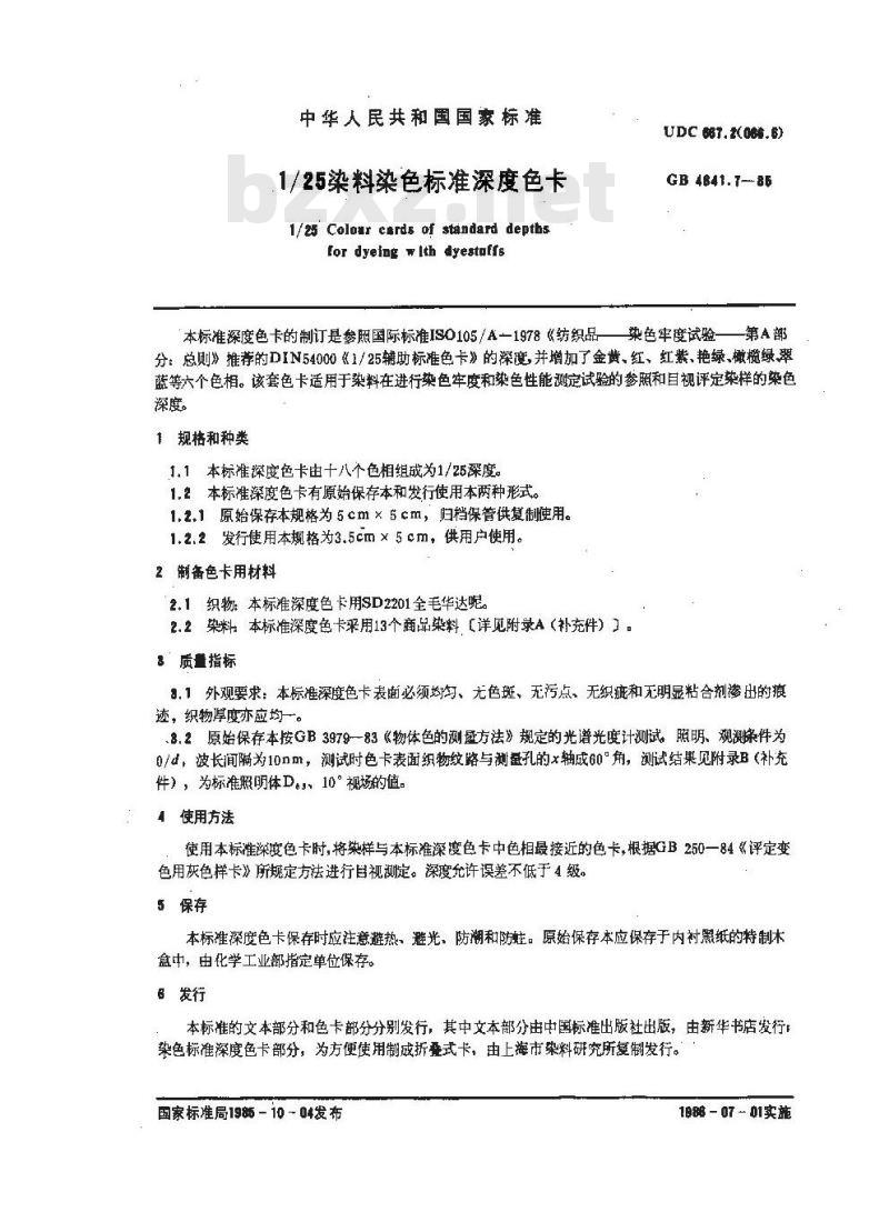- GB/T 4841.7-1985 1/25染料染色标准深度色卡