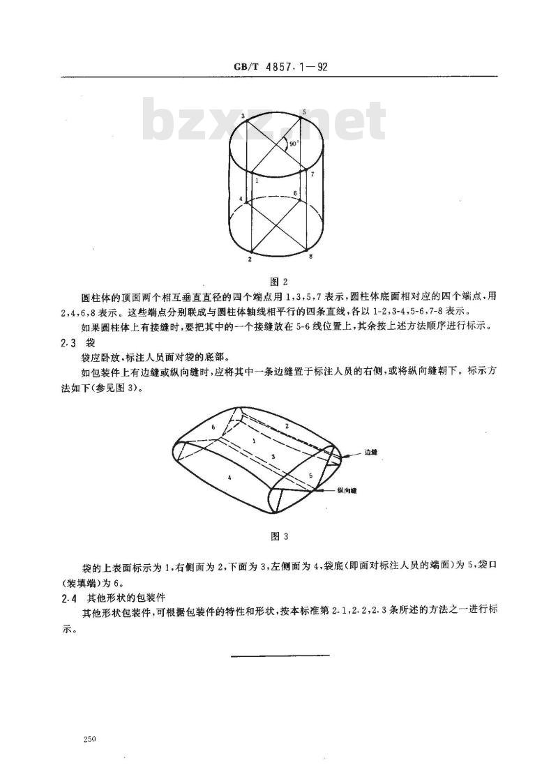 本标准规定了运输包装件(以下简称包装件)在进行试验时标示部位的方法。本标准适用于标示包装件,标示包装容器亦可参照使用。2标示方法