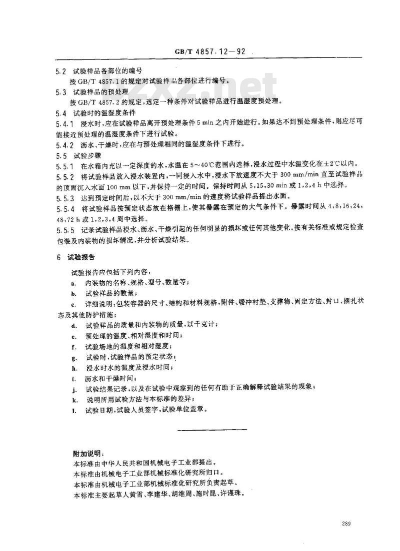 - GB/T 4857.12-1992 包装 运输包装件 浸水试验方法