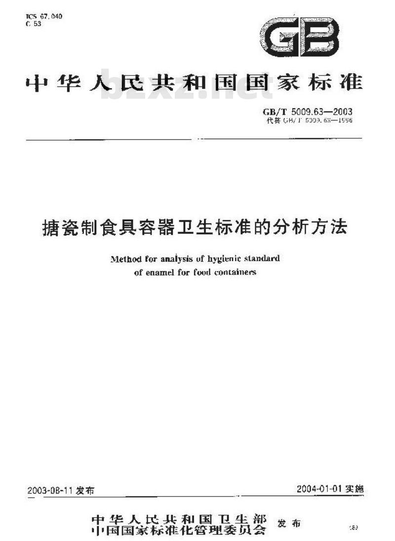 - GB/T 5009.63-2003 搪瓷制食具容器卫生标准的分析方法