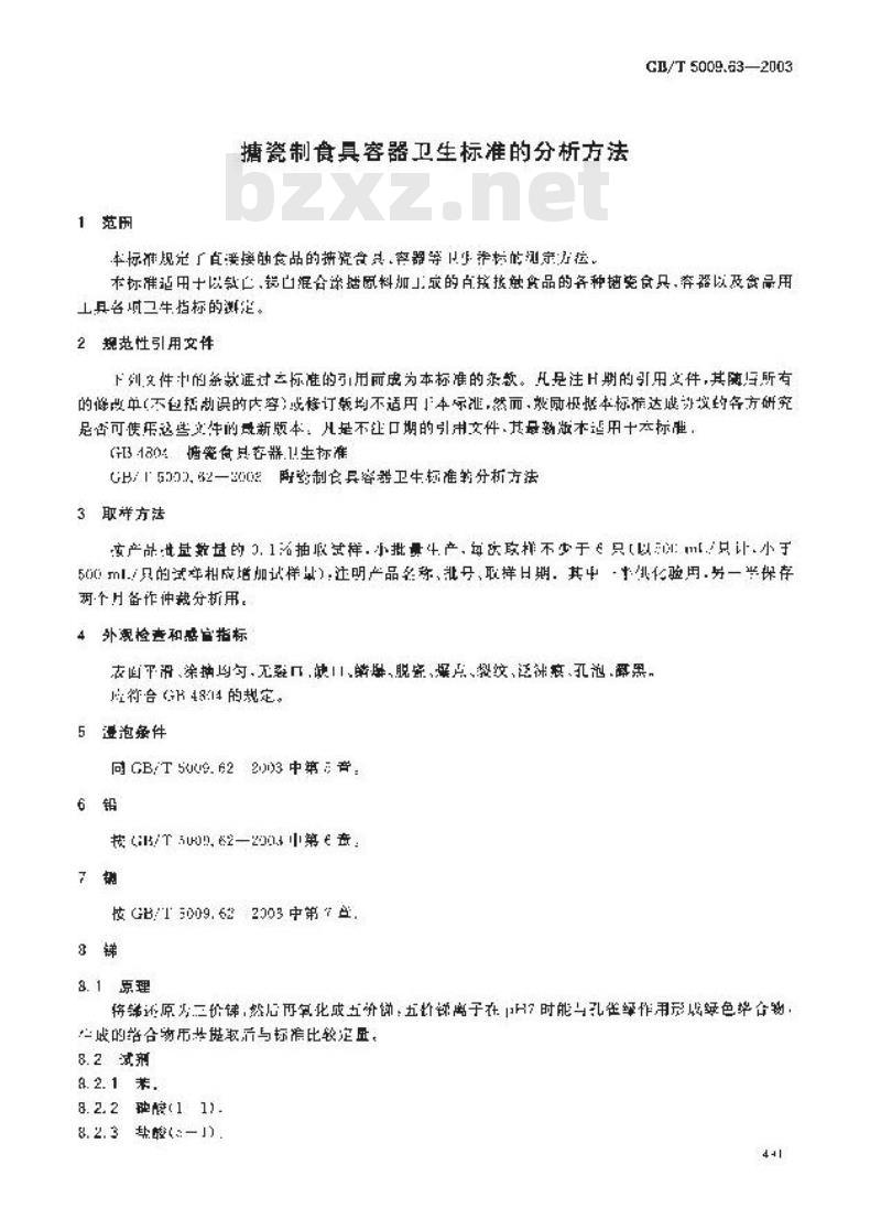糖瓷制食容器卫生标准的分析方法本标准规完了直接接融食品的拼瓷贯其,睾器等作准标的测定方位。GB/T 5009.632003