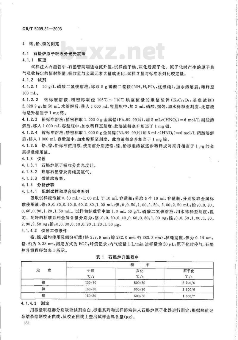 同GB/T5009.12一2003中第21章,第22章。铅标准溶液按GB/T5009.12—2003配制。4.4.3分析步骤