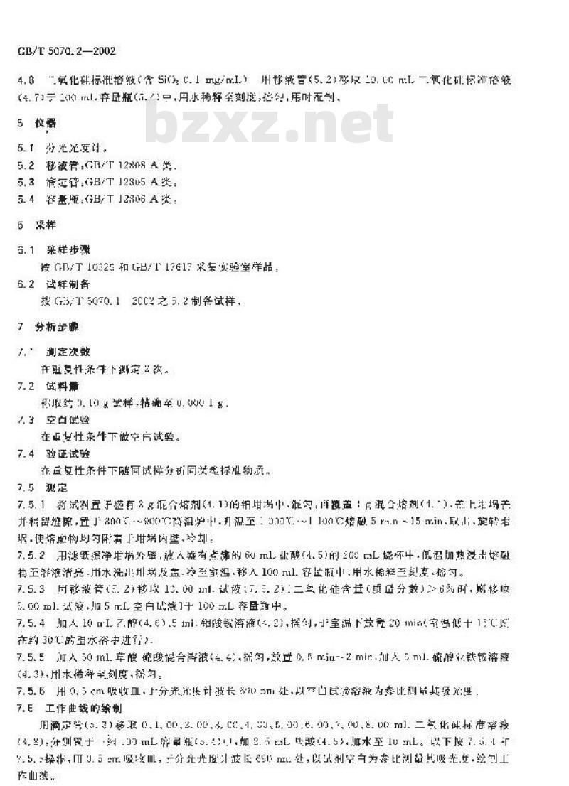 第2部分:镇蓝光度法测定二氧化硅量B,TS?扩本部分规定广组蓝北度法规一氧化评量的法,GB/T 5070. 2—2002
