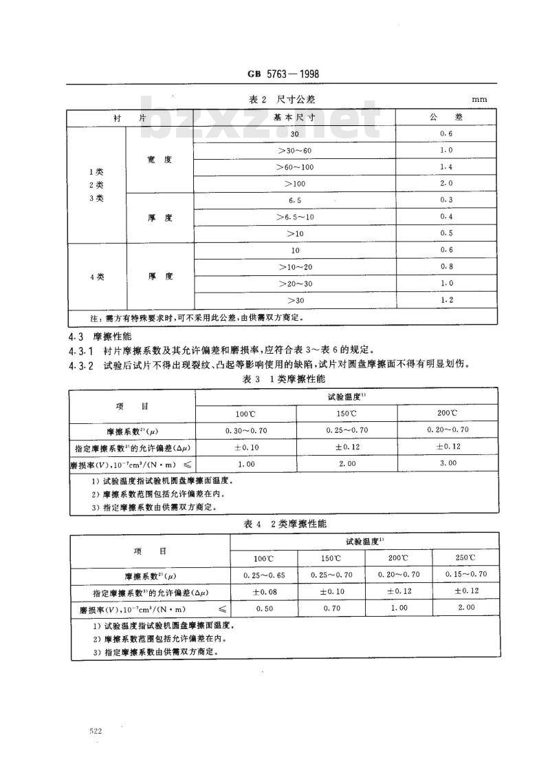 1)试验温度指试验机圆盘摩擦面温度。2)摩系数范围包括允许偏差在内。3)指定摩擦系数由供需双方商定。522