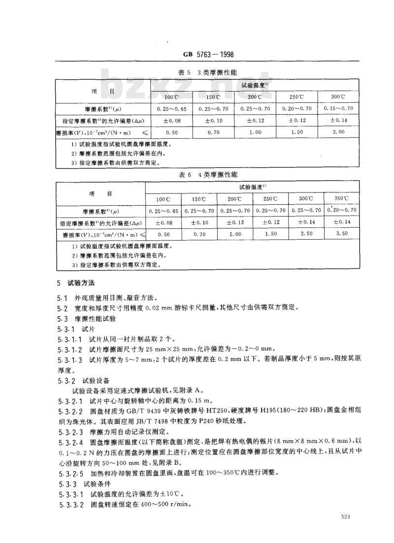 1)试验温度指试验机圆盘摩擦面温度。2)摩擦系数范包括允许偏差在内。3)指定摩擦系数由供需双方商定。5试验方法
