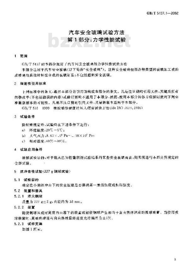 - GB/T 5137.1-2002 汽车安全玻璃试验方法 第1部分: 力学性能试验