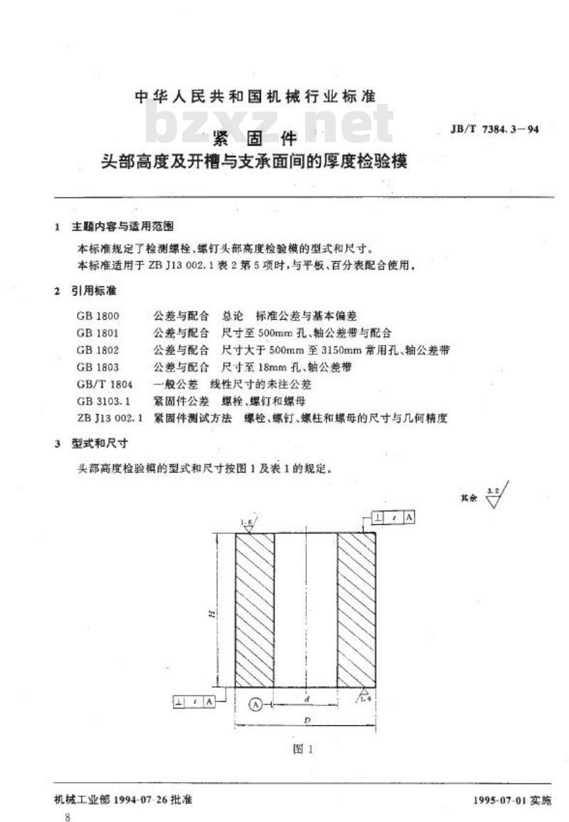- JB/T 7384.3-1994 紧固件 头部高度及开槽与支承面间的厚度检验模
