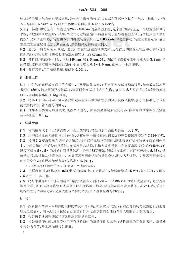 - GB/T 5304-2001 石油沥青薄膜烘箱试验法