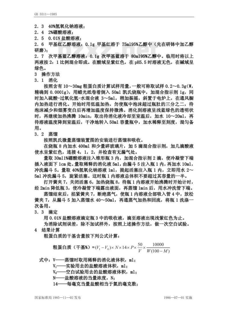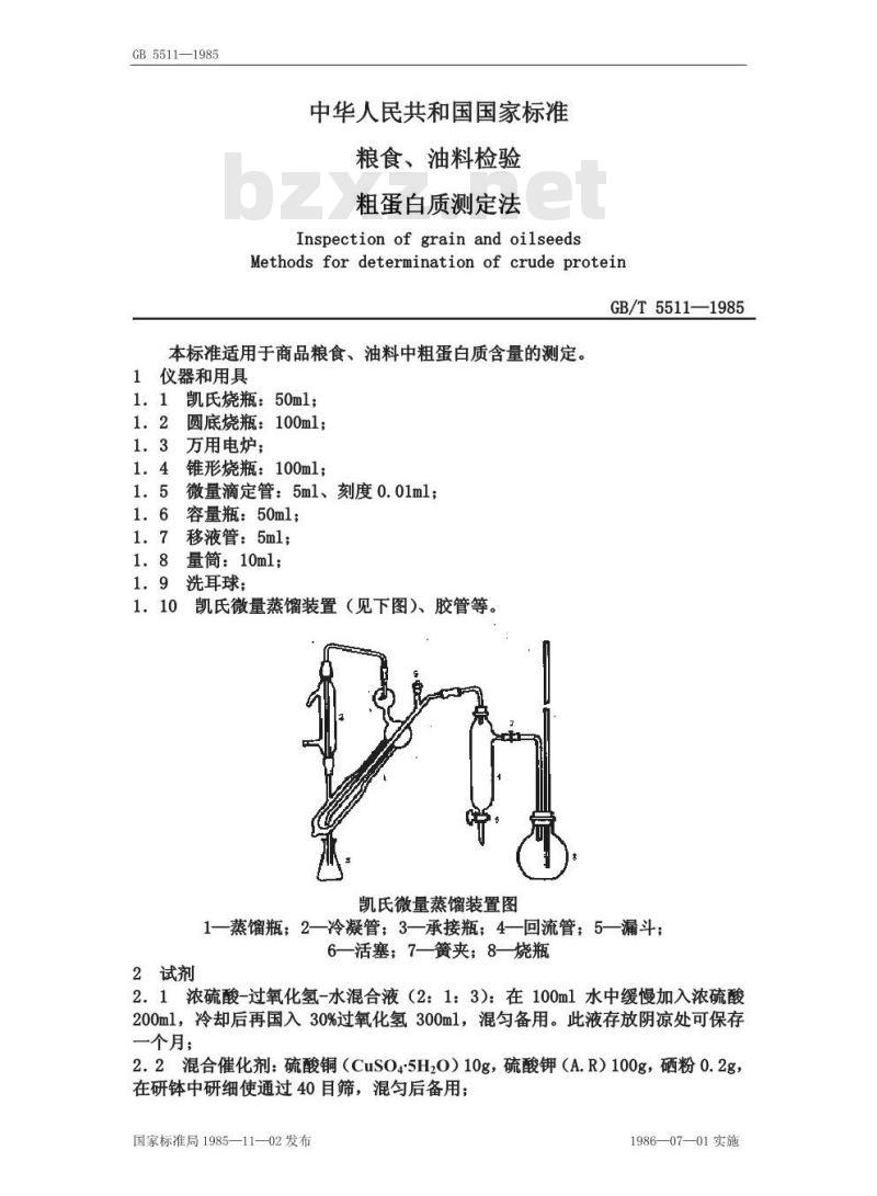 - GB/T 5511-1985 粮食、油料检验 粗蛋白质测定法