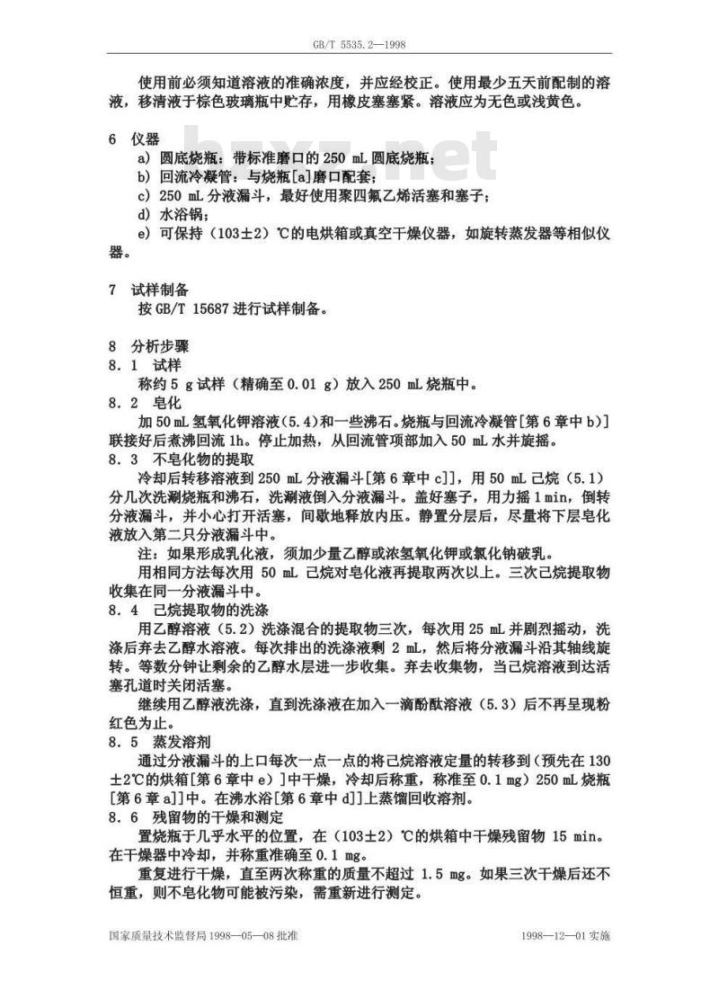- GB/T 5535.2-1998 动植物油脂 不皂化物测定 第2部分:己烷提取快速法
