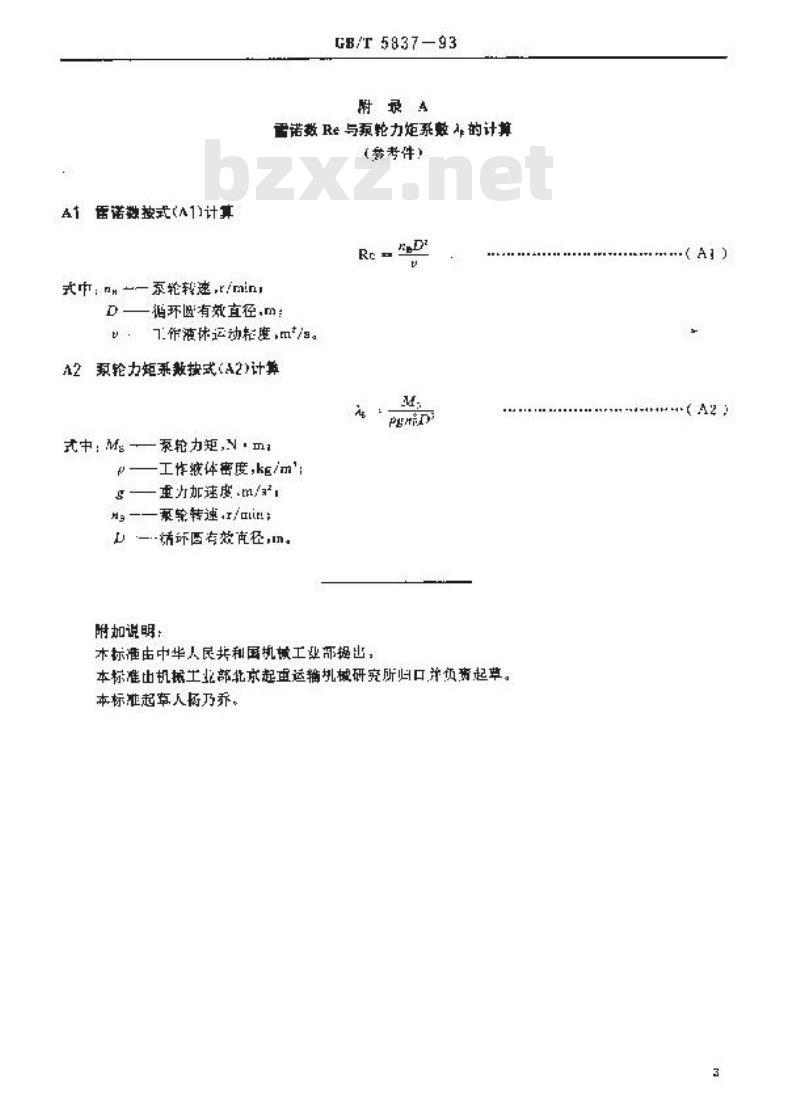 需诺数Re与泵轮力矩系整A的计算(参考件)