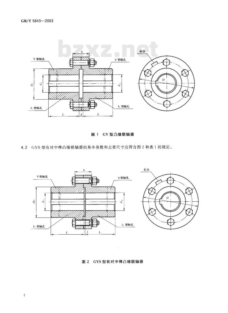 4.2GYS型有对中样凸缘联轴器的基本参数和主要尺寸应符合图2和表1的规定。标志