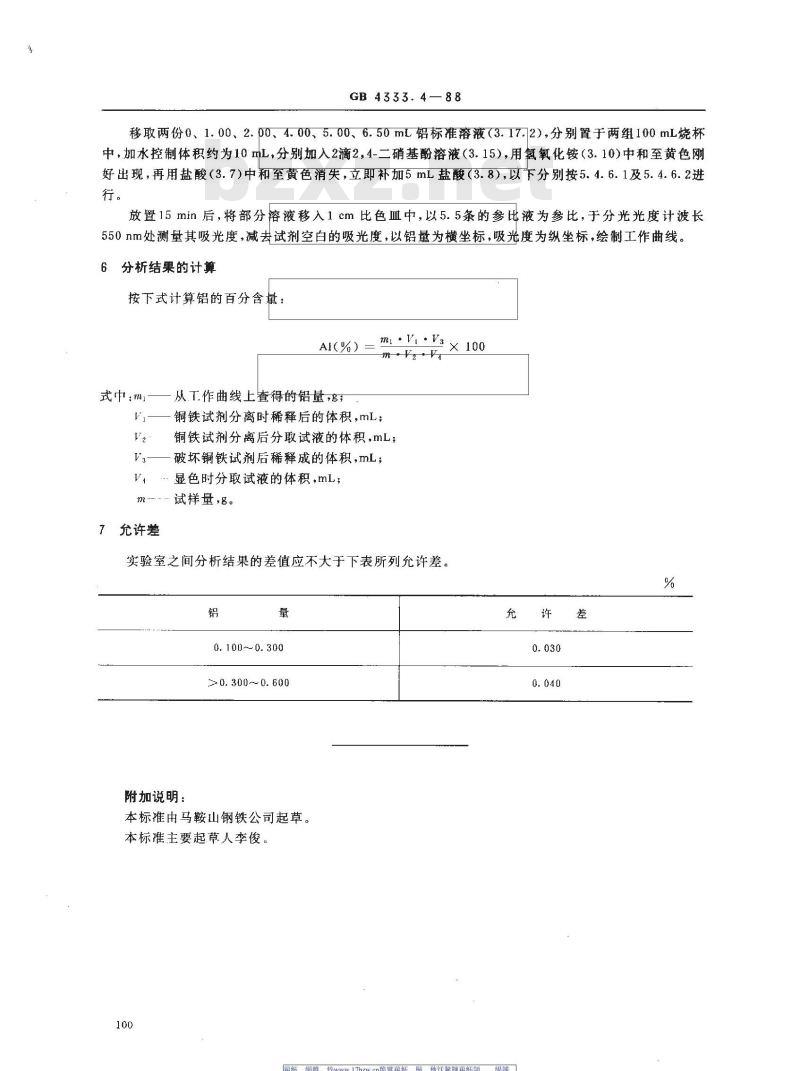 - GB 4333.4-1988 硅铁化学分析方法 铬天青S光度法测定铝量