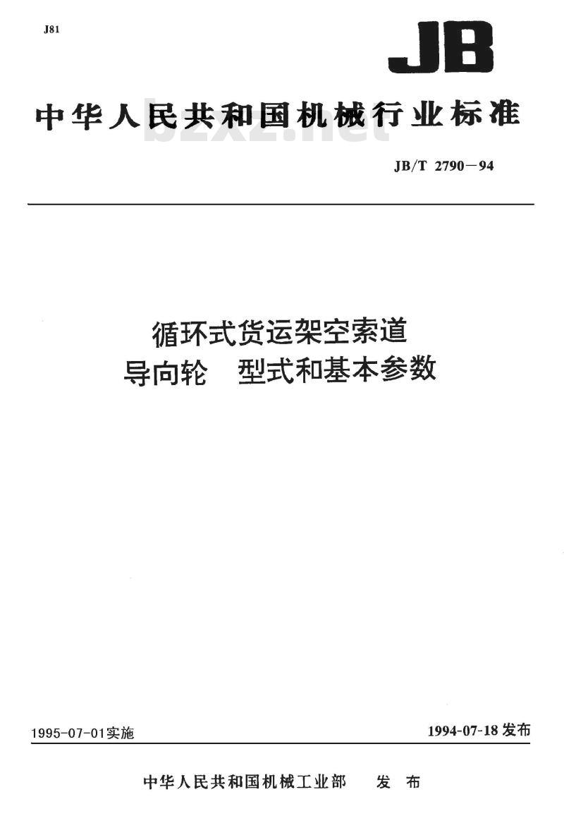 - JB/T 2790-1994 循环式货运架空索道 导向轮