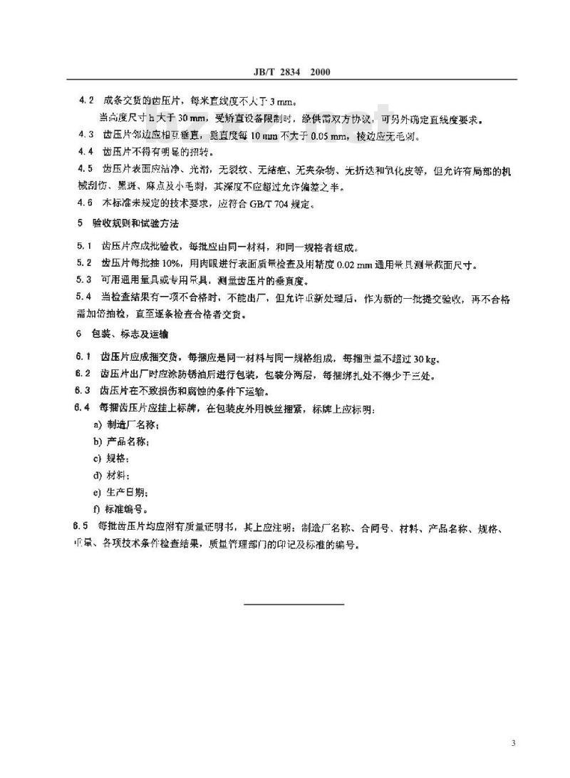 3.3齿压片的供货规格规定如下:JB/T28342000