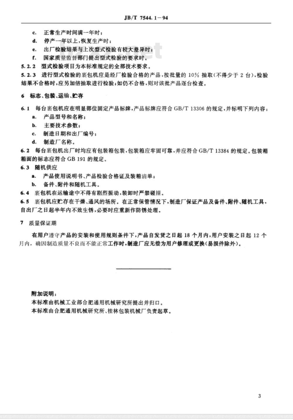 本标准由机械工业部合肥通用机械研究所提出并归口。本标准由合肥通用机械研究所、桂林包装机械厂负责起草。3