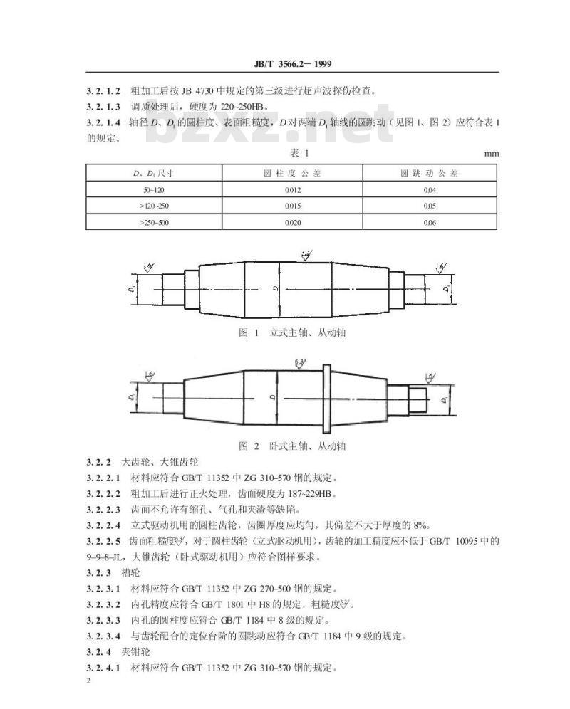 3.2.1.2粗加工后按JB4730中规定的第三级进行超声波探伤检查,3.2.1.3调质处理后,硬度为220~250HB。3.2.1.4轴径D、D的圆柱度、表面粗糙度,D对两端D,轴线的圆跳动(见图1、图2)应符合表1的规定。