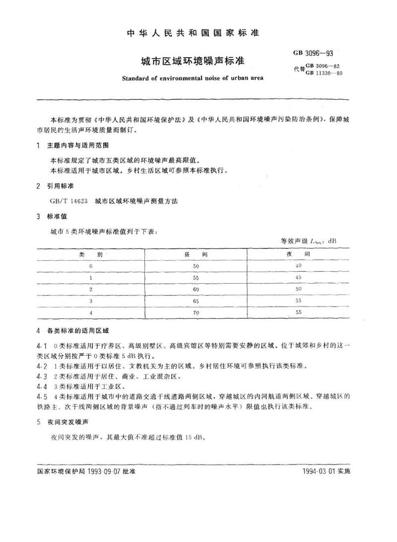 - GB 3096-1993 城市区域环境噪声标准