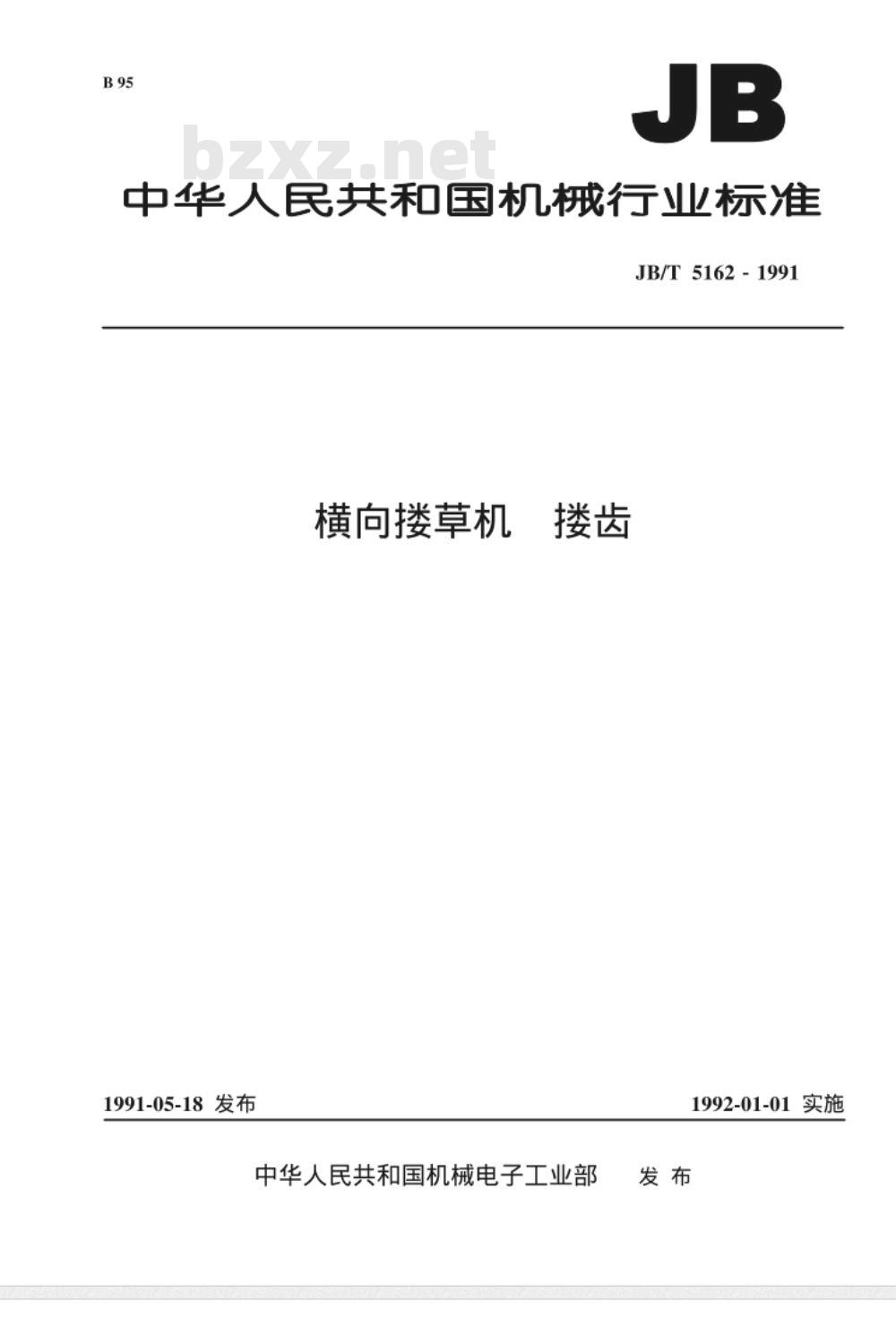 - JB/T 5162-1991 横向搂草机 搂齿