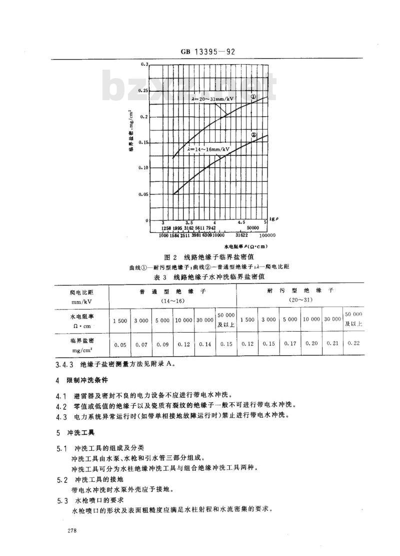 ?密裙绝缘子应按普通型绝缘子看待。3.4.2电力线路的绝缘子,只有在不超过图2及表3所给出的临界盐密值时方可进行带电水冲洗。277