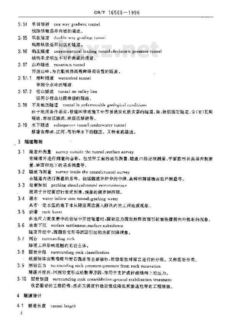 本标准规定了铁路隧道的基本术语及其定义。本标准适用于铁路隧道工程的勘测、设计、施工、运营、科研、教学等方面。 GB/T 16566-1996 铁路隧道术语 GB/T16566-1996