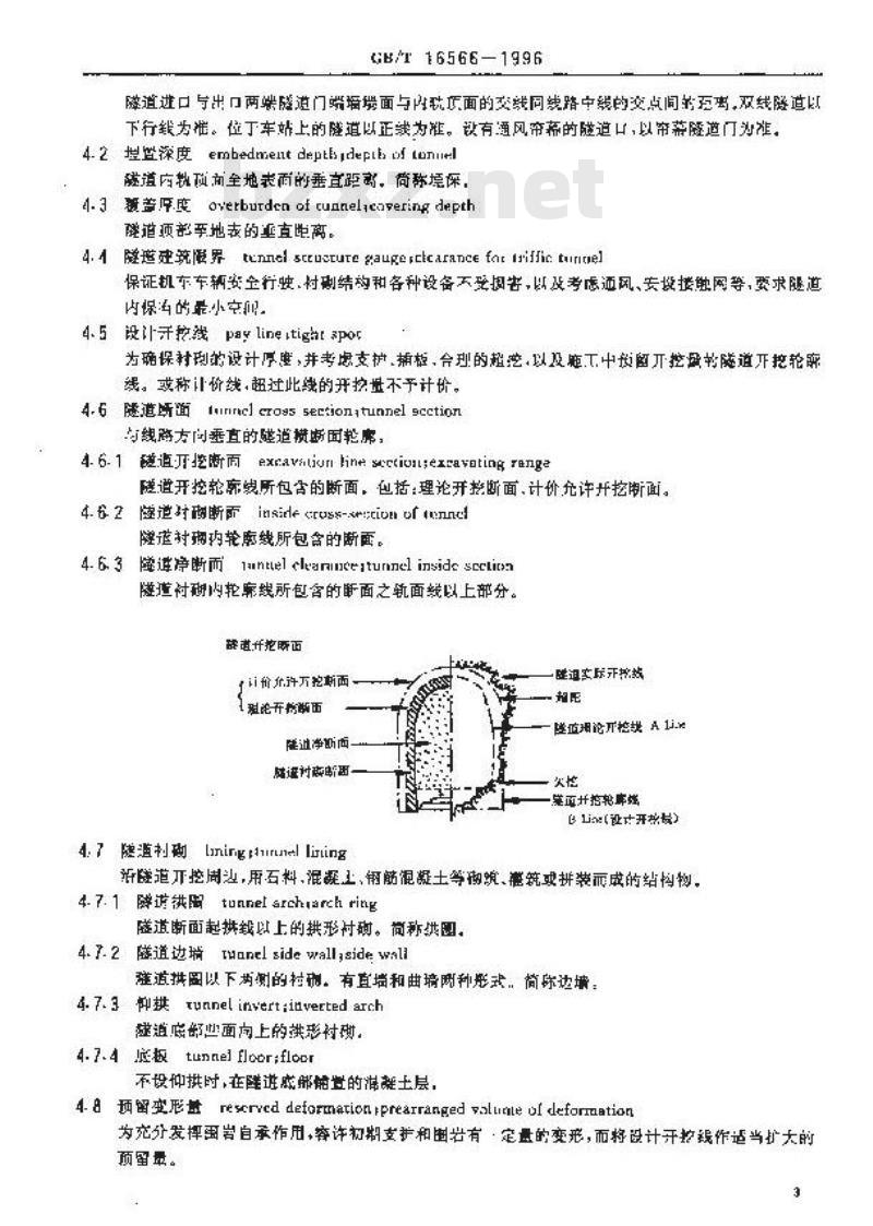 4.5设让于挖线paylineitightspor为确保村到的设计厚座,并考虑支护,插柜,合理的超,以及魔工中税留开控盘转隧道开挖轮率线,或称计价线,超过此战的并控世不予计价。4.6隧道所面lunnelerossseetion;tunnel scction与线游方问垂直的继道揽断面轮席,4.6.1道抢断面exravatiun linescctionseiravatingrang2隧道开挖轮弃战所包含的断面,包括:理论开挖断面、计价充计并挖断面。4.62隧适翻断ineirleruss-xcionof nn隧衬内轮痴线所包含的断面。