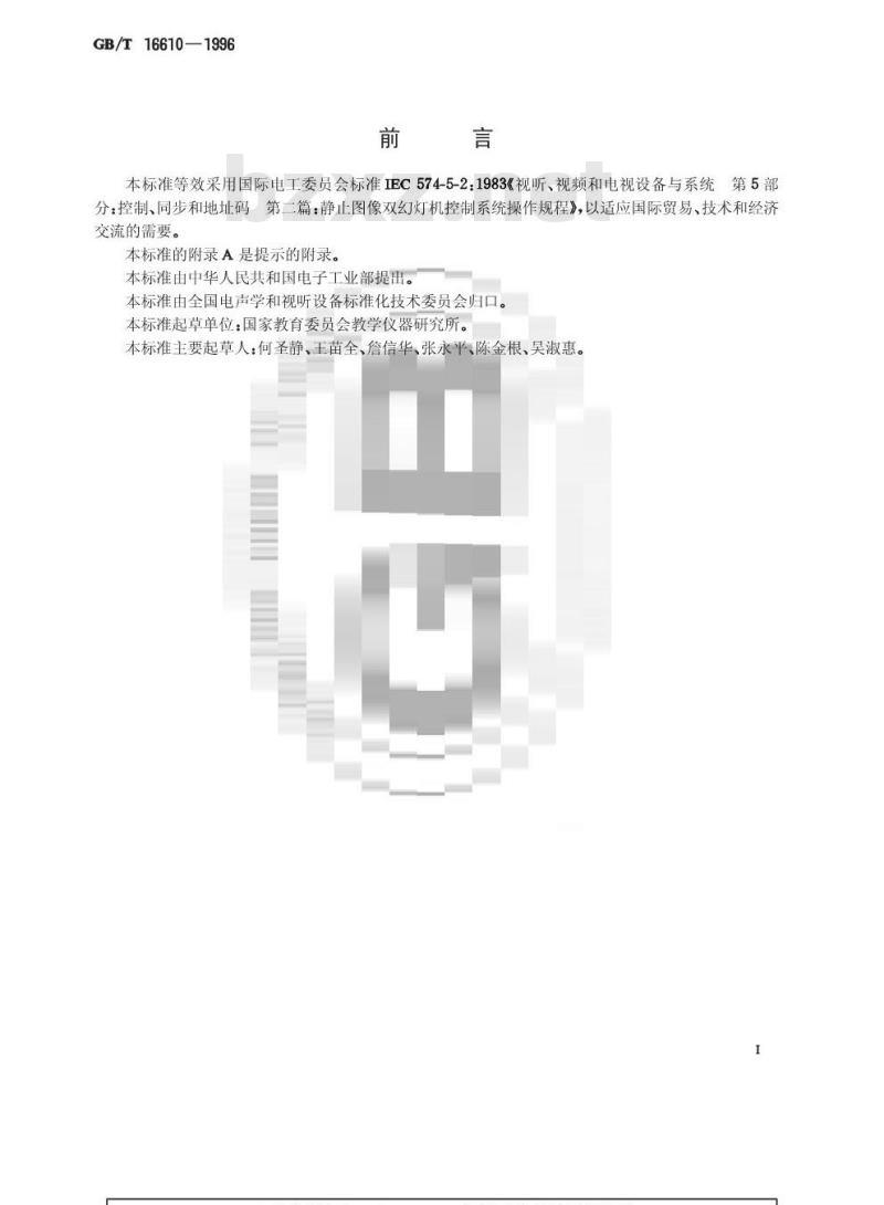 - GB/T 16610-1996 视听、视频和电视设备与系统 双幻灯机控制系统操作规程