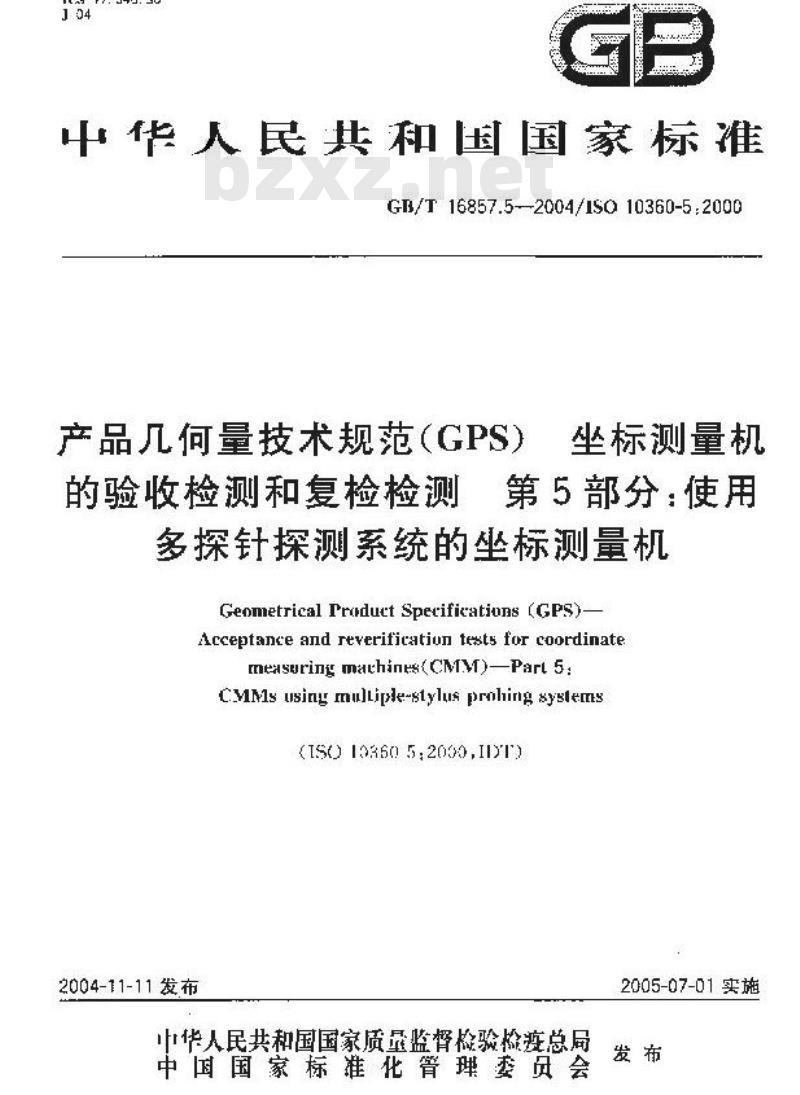 GB/T 16857.5-2004/1SO 10360-5:2000产品几何量技术规范(GPS)