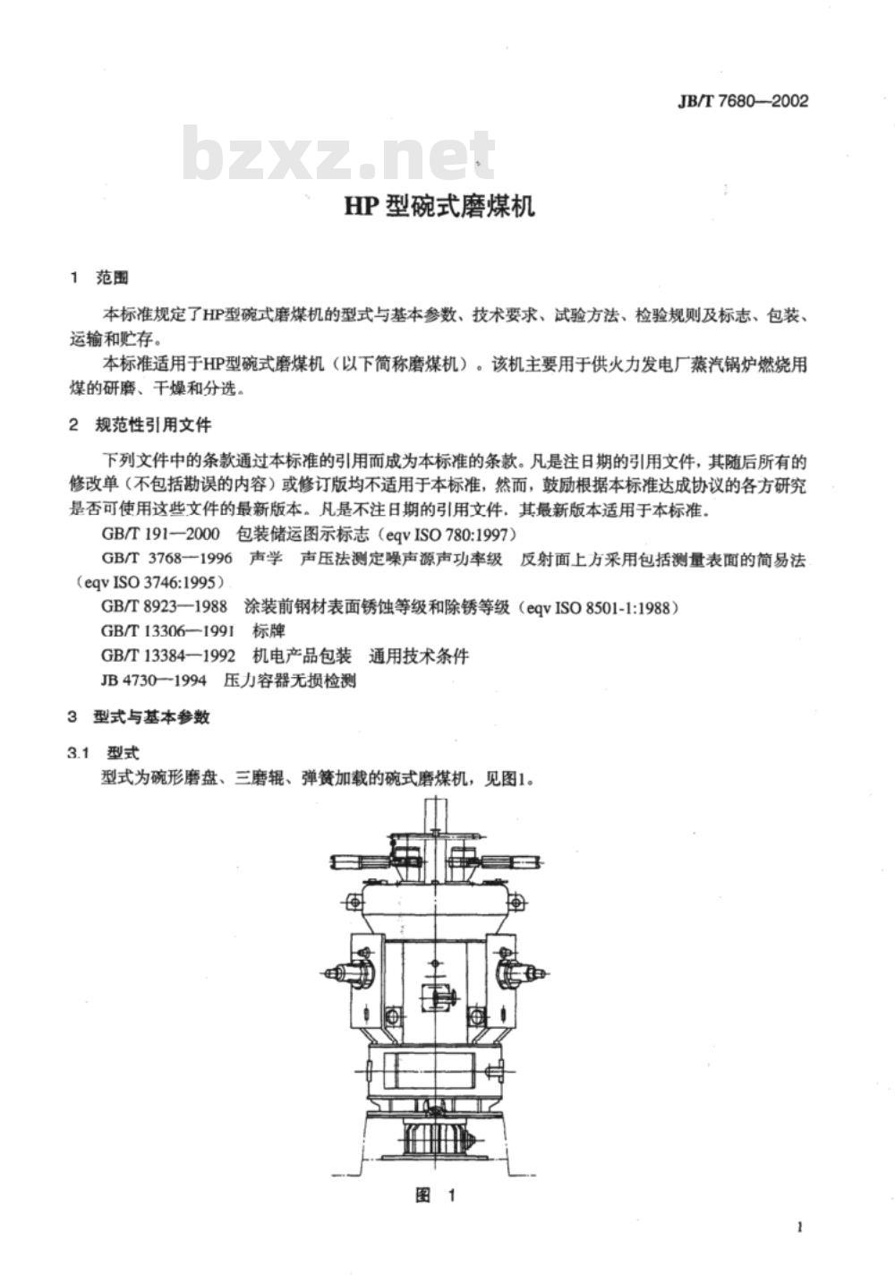 本标准代替JB/T7680—1995《HP型碗式磨煤机》本标准与JB/T76801995相比主要变化如下:表1中技术参数的名称及单位,改为与电力行业的称呼一致:电动机额定功率按美国CE公司提供的设计标准中的数据进行修改;增加磨煤机最小出力要求;