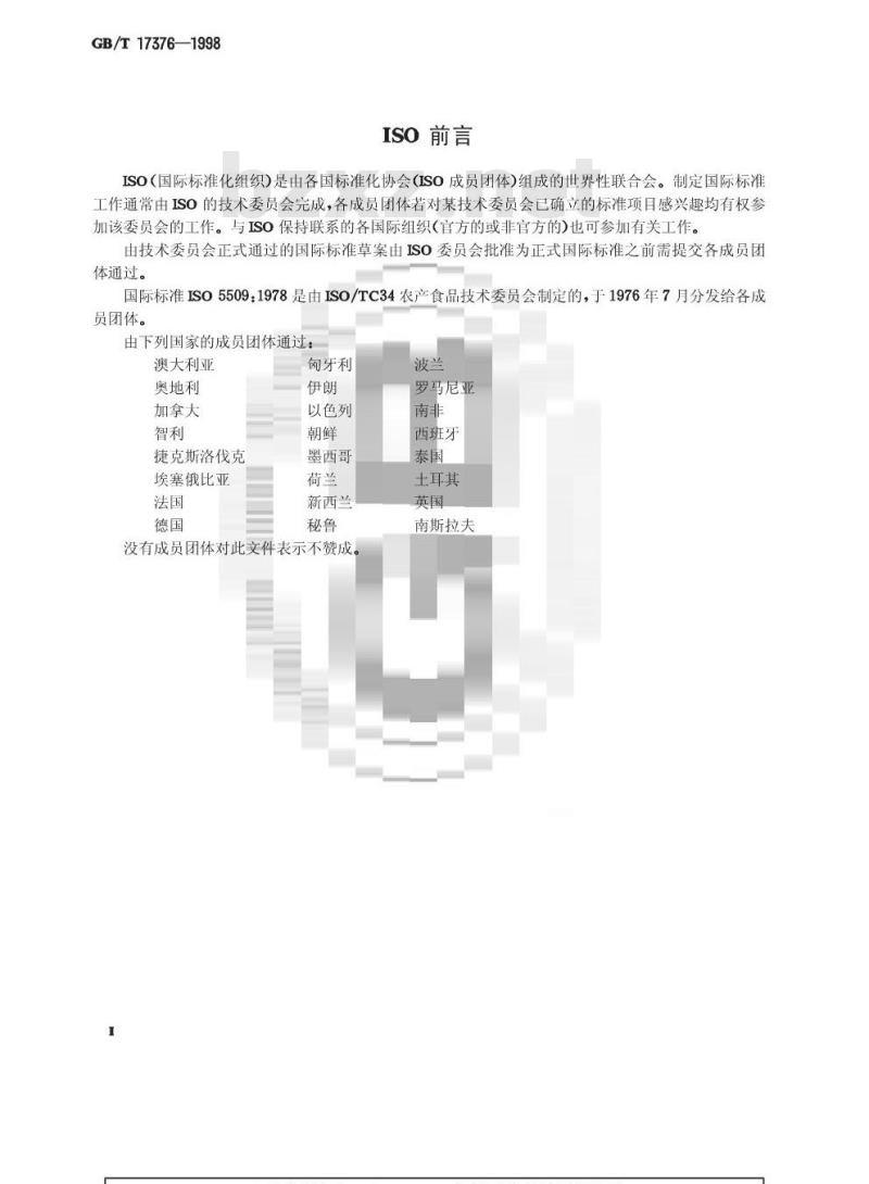 国际标准ISO5509:1978是由ISO/TC34农产食品技术委员会制定的,于1976年7月分发给各成员团体。