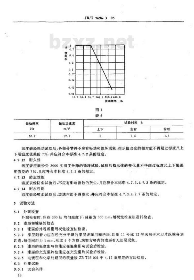 试验仅在温度上升时的标度尺中间温度值上进行,其方法按JB/T7696.1的规定。5.3.10振动试验