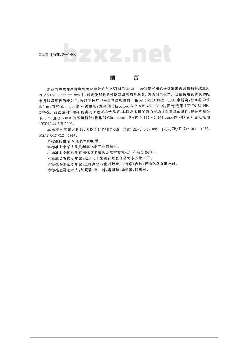 - GB/T 17530.2-1998 工业丙烯酸酯纯度的测定 气相色谱法