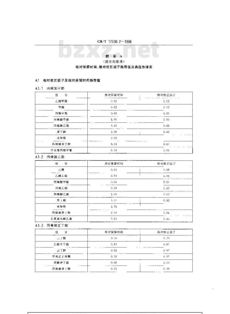 相对保留时间,相对校正固字推荐值及典型色谱图A1相对校正因子及相对保留时间推荐值A1.1内烯酸甲酯
