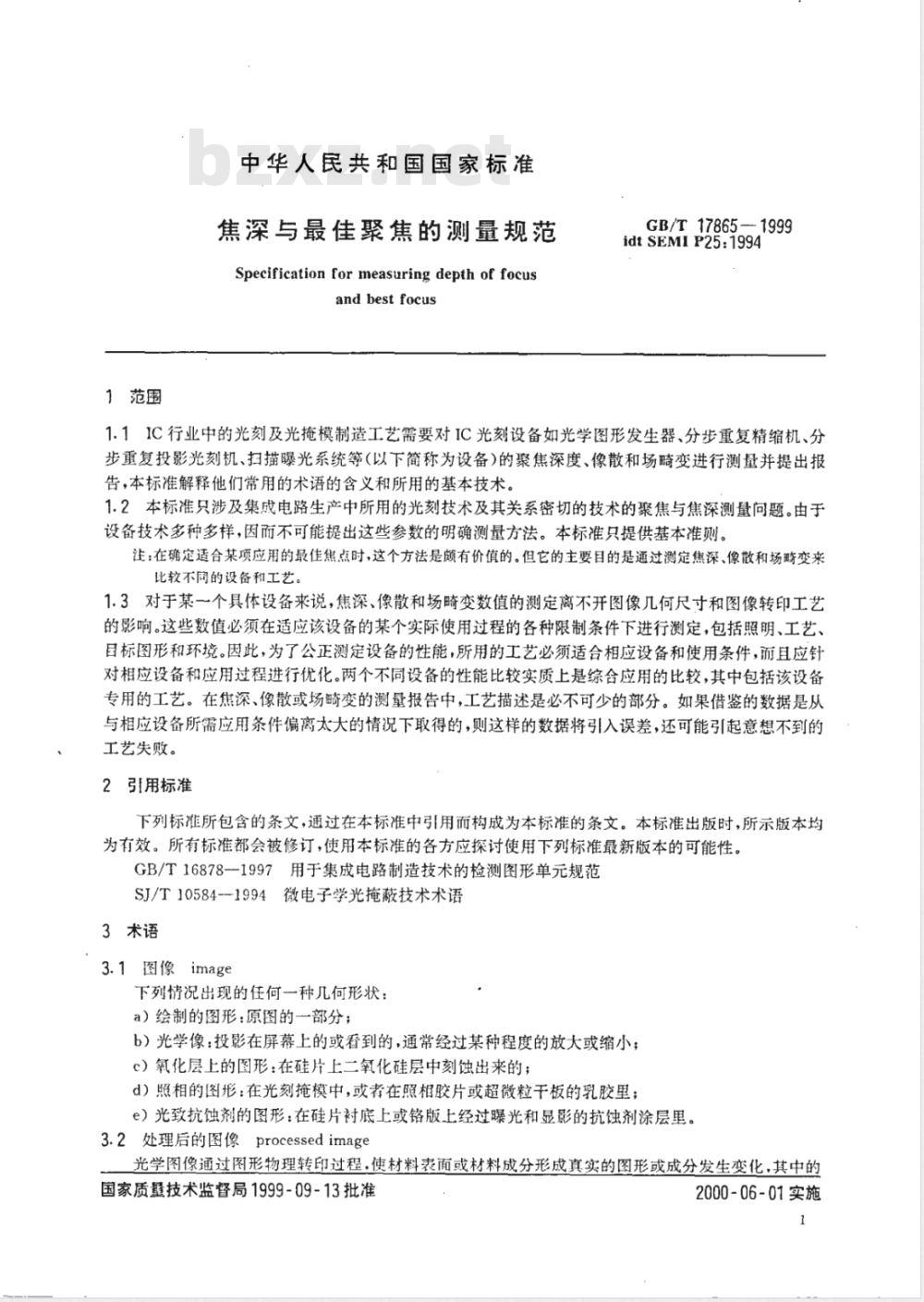 - GB/T 17865-1999 焦深与最佳聚焦的测量规范