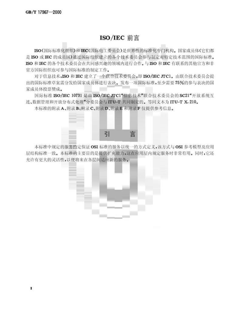 国际标准ISO/IEC10731是由ISO/IECJTC1\信息技术”联合技术委员会的SC21“开放系统互连、数据管理和开放分布式处理”分委员会与ITU-T共同制定的。等同文本为ITU-TX.210。本标准的附录A、附录B、附录C、附录D、附录E和附录F仅提供参考信息。引
