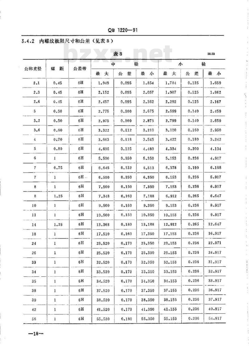 3.4.2内螺纹极限尺寸和公差(见表8)表3