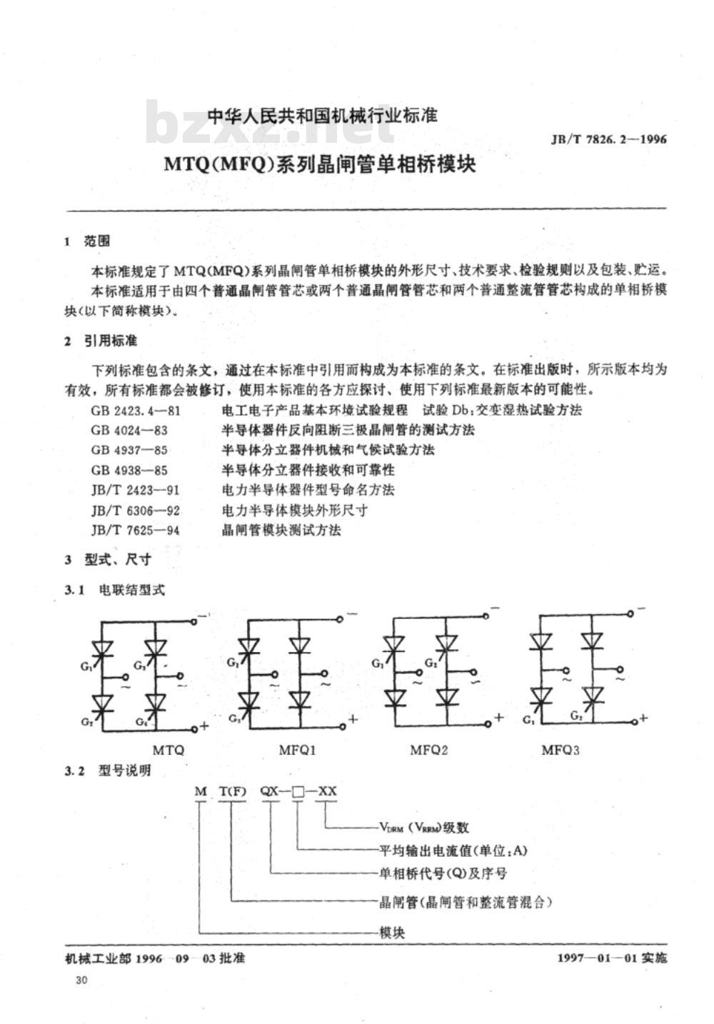 - JB/T 7826.2-1996 MTQ(MFQ)系列晶闸管单相桥模块