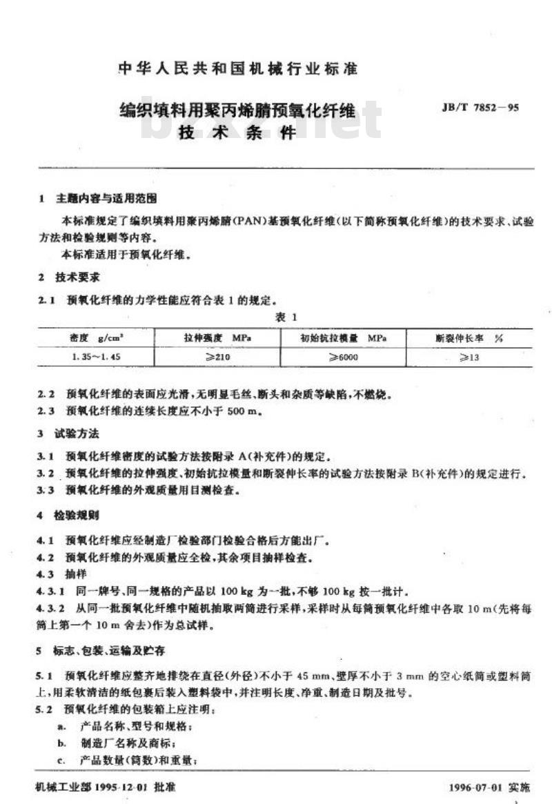 - JB/T 7852-1995 编织填料用聚丙烯晴预氧化纤维 技术条件