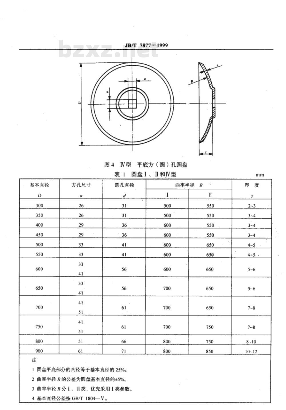 2曲率半径R的公差为圆盘基本直径的±5%。3曲率半径R分I、IⅡI类,优先采用1类参数。4基本直径公差按GB/T1804V。