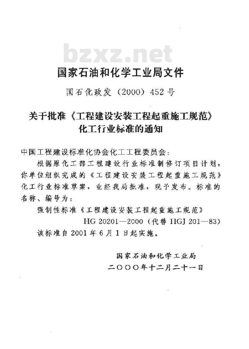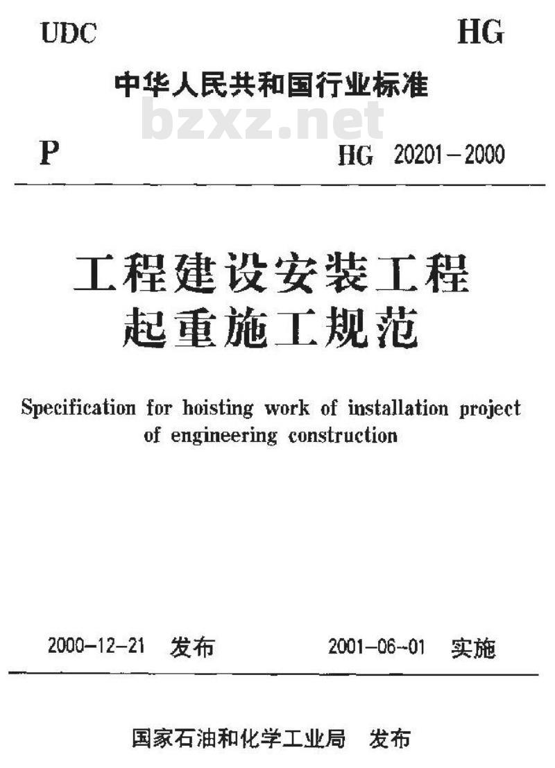 - HG 20201-2000 化工工程建设起重规范