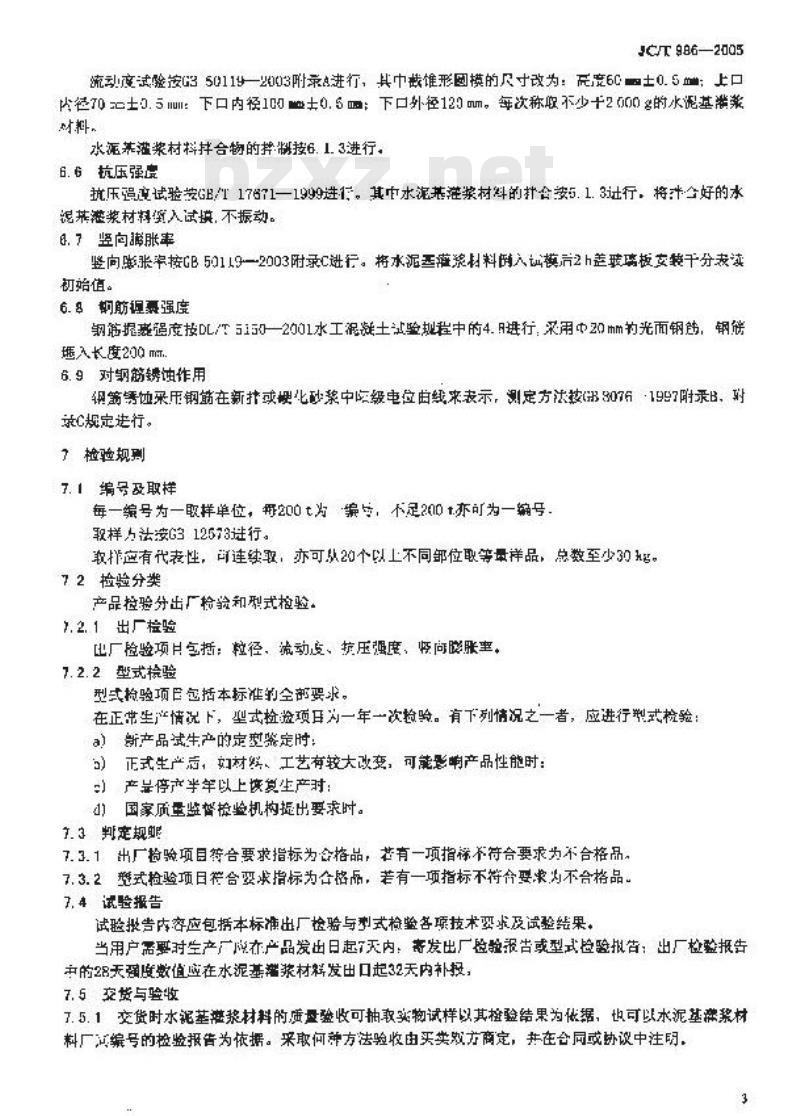 7.5.2以抽收实物试样的检验结果为验收依据时,买类效方应在发质前或交货地共回取择和封存。项样方法按CB1257S进行,取样数量为60kg,均分为二等份,一份由卖方保存40天,一份日买方按本标准疑定的须目和方法进行检验。在40天以内,买行检验认为质量不衍会本标准要求,而交方又有典议时双方应将卖方保存的另一份试样逆省级或省级以上目家认可的质早疏睿机构进行件裁检验。7.5.3以水泥莱灌浆材料厂同编号水泥基潜浆材料的检检根为检收依摄时,发货前或交货时买力在同编号水泥基港浆材料中辅政试样,双方共同签封后保存三个月:或零托关力在同编号水泥基满浆对中抽取试样,签封后保存三个月:在三个月内,买右对水混基灌浆材料质量有疑司时,则买变效方应将签封的试样决省级或省经以工国家认可的质盘监情机构进行件裁检验,8包装、标志,产品说朗书、合格证、运输与存6.1包装