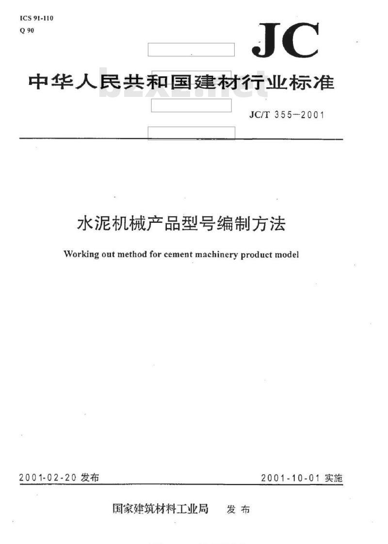 - JC/T 355-2001 水泥机械产品型号编制方法