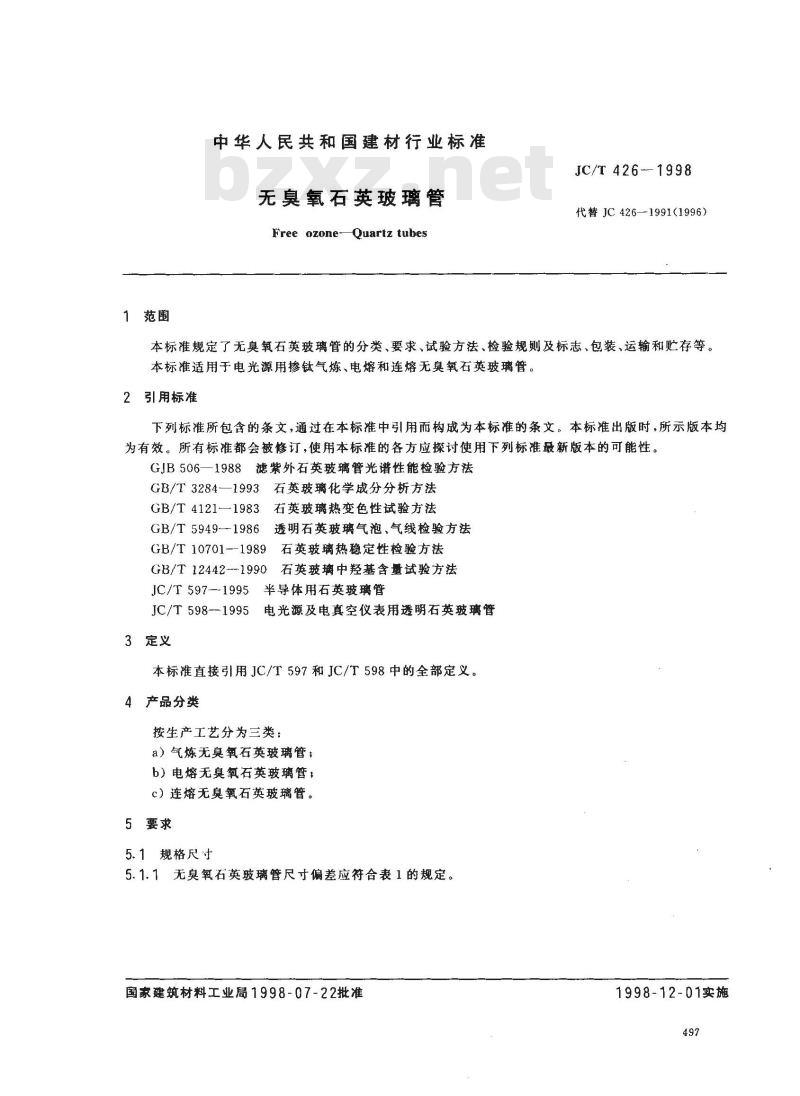 - JC/T 426-1998 无臭氧石英玻璃管